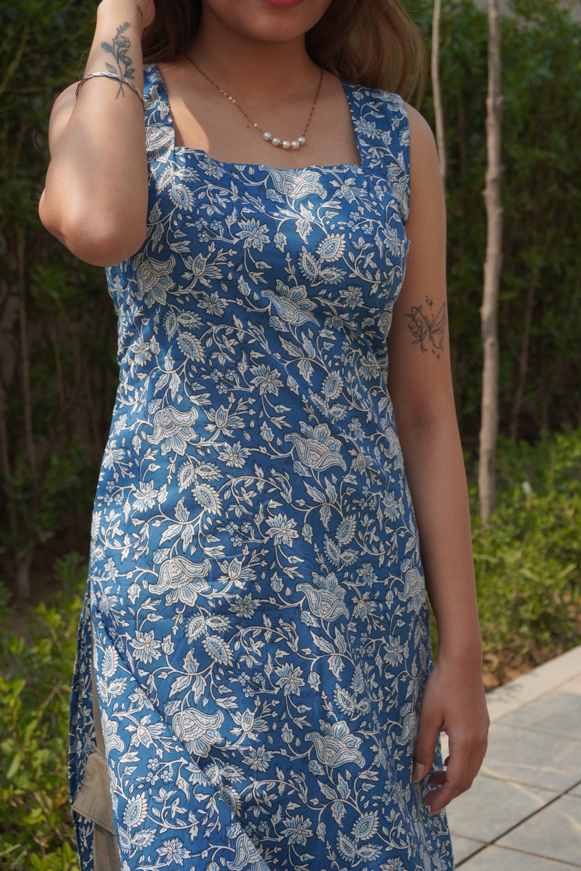 Effortlessly feminine with a modern twist — our Blue Floral Cotton Corset Back Kurti is designed for women who love comfort with statement details.