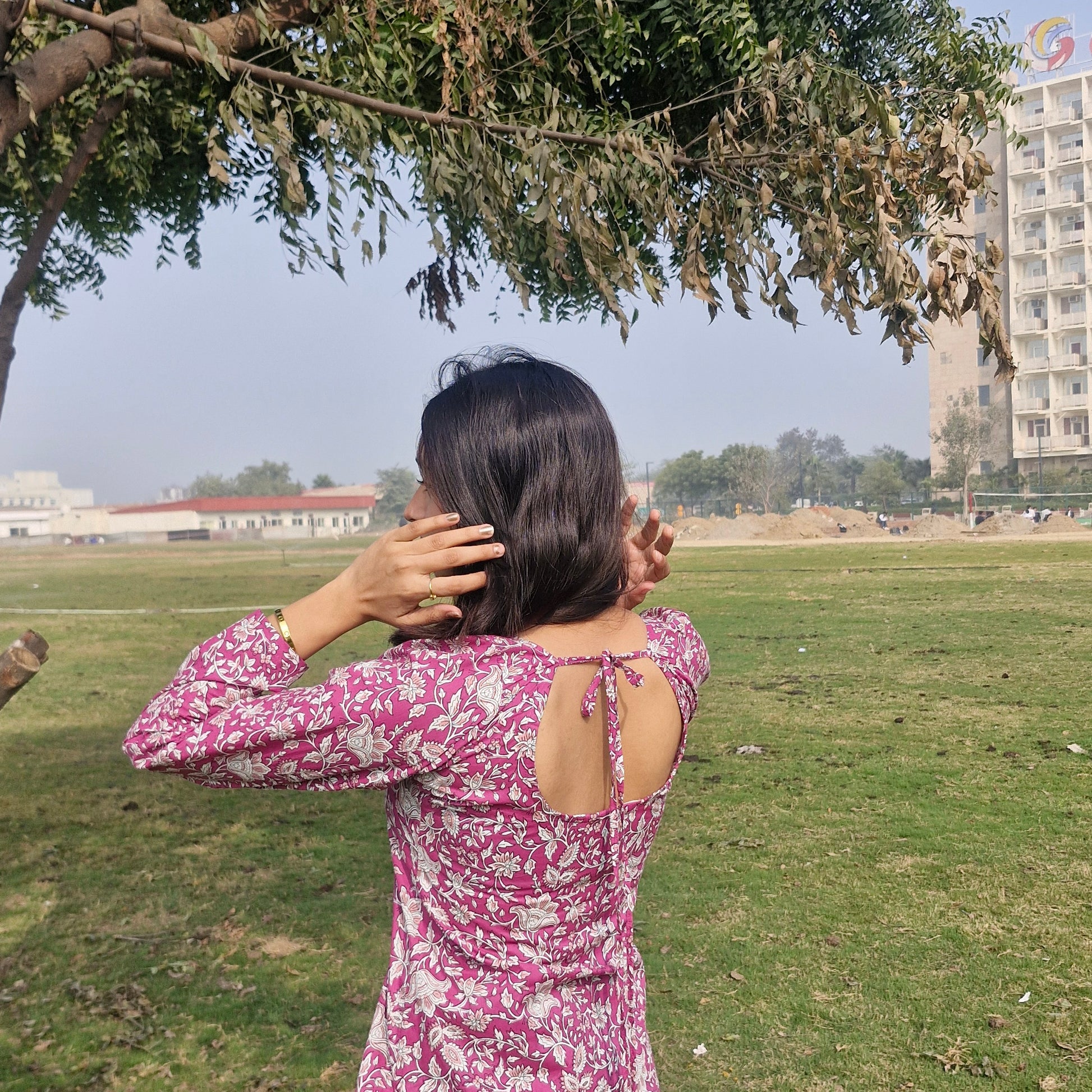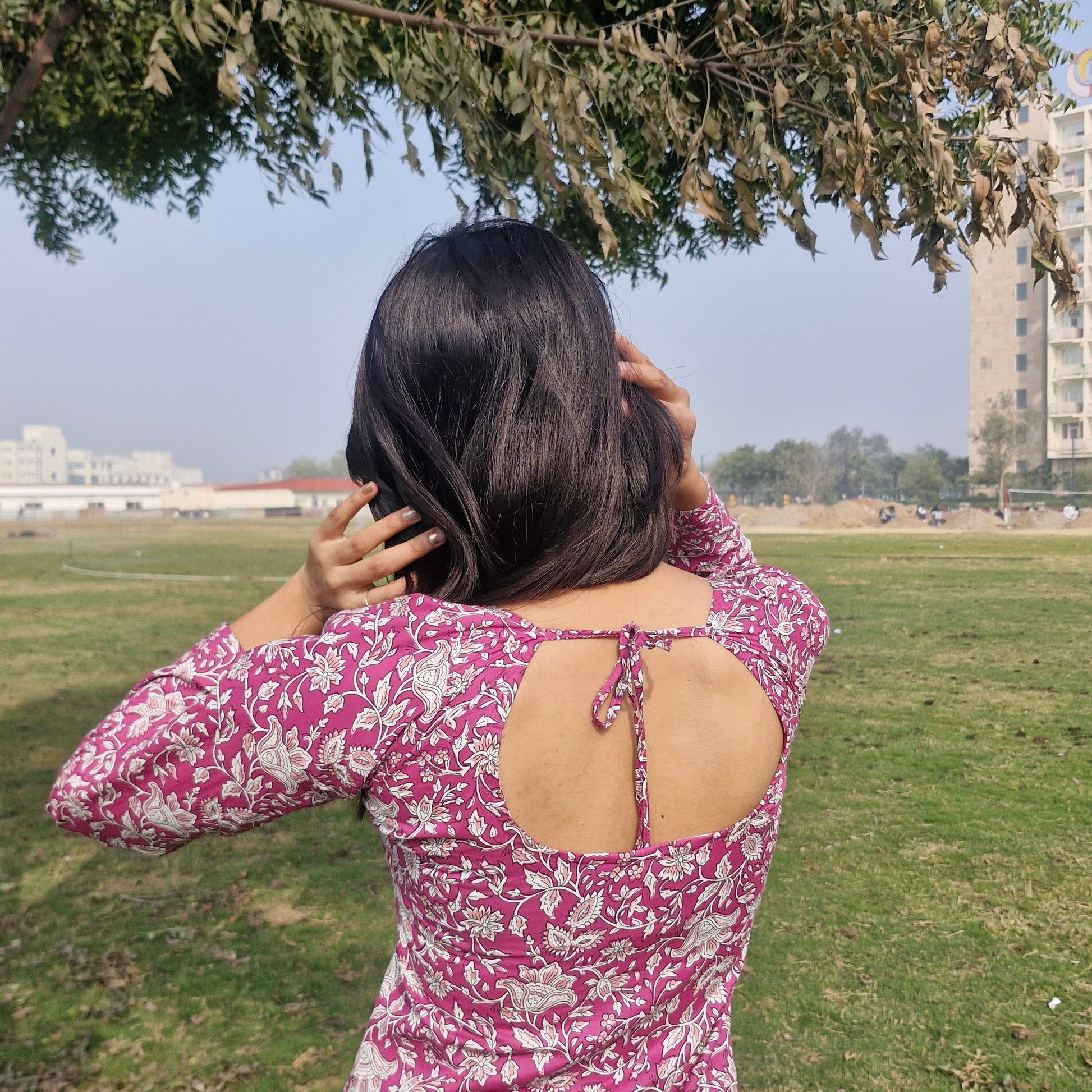 Crafted from soft and breathable cotton fabric, this kurti ensures all-day comfort while keeping the look effortlessly stylish. It features a contemporary square neckline, full sleeves, and a tasteful backless design with a tie-up closure that adds a subtle statement without compromising wearability.